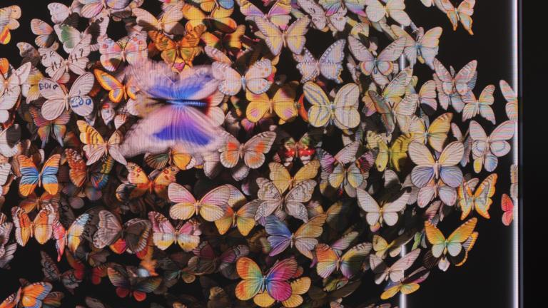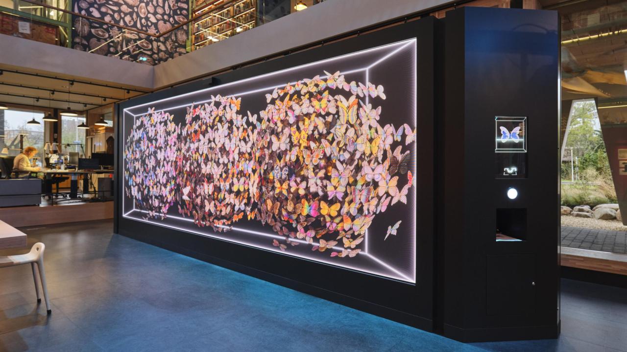 Since 2024, LiveScience has an interactive artwork: Origins of Imagination, made by the British multimedia artist Dominic Harris. Visitors can use the artwork to scan a butterfly drawing that they coloured themselves, and then see how AI transforms it into a realistic, moving butterfly. The butterflies move together in a swarms on the large and responsive screen.