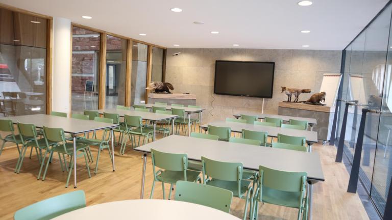 Deze ruimte heeft een permanent touchscreen en flexibele indeling van tafels en stoelen. Zo kan de zaal worden aangepast aan de wensen van groepen van 20 tot 30 personen. De zaal kijkt uit over de indrukwekkende entree van het museum.
