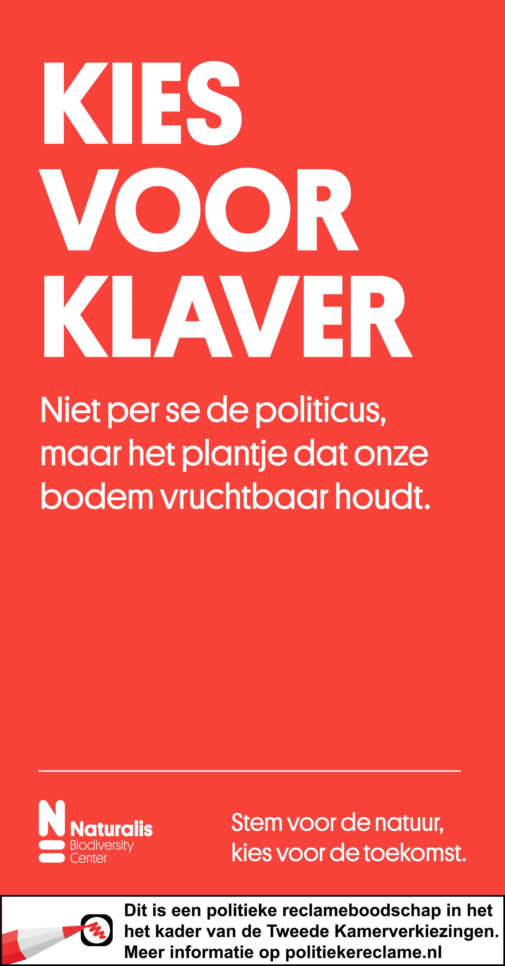 Marcel Beukeboom, algemeen directeur Naturalis: “Onze biodiversiteit holt razendsnel achteruit. In het huidige politieke klimaat gaat veel aandacht uit naar de veiligheid van ons land, maar het gaat nog te weinig over biodiversiteit, terwijl dat een minstens zo urgent veiligheidsvraagstuk is. Het behoud van de natuur is onze bestaanszekerheid. Het raakt aan voedsel, aan gezondheid, aan onze weerbaarheid tegen klimaatverandering en nog veel meer. We willen met deze campagne de stem van de natuur laten horen; we hopen kiezers bewust te laten nadenken over de invloed van hun stem. Ook proberen we politici te inspireren tot meer aandacht voor biodiversiteit.”