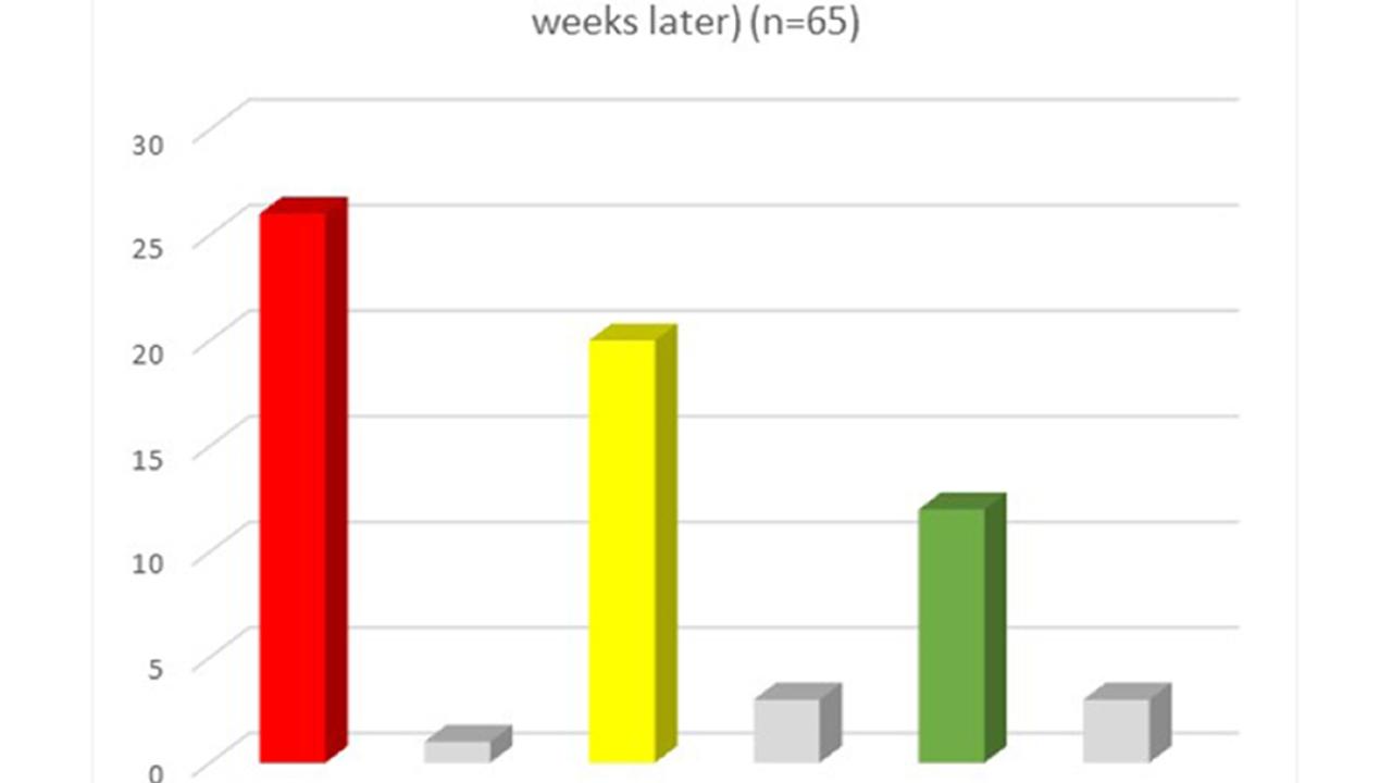Figuur 4: de resultaten, waarbij de letters de eerste en tweede beoordeling aanduiden (bijv. GG = twee keer in de categorie Groen ingedeeld).