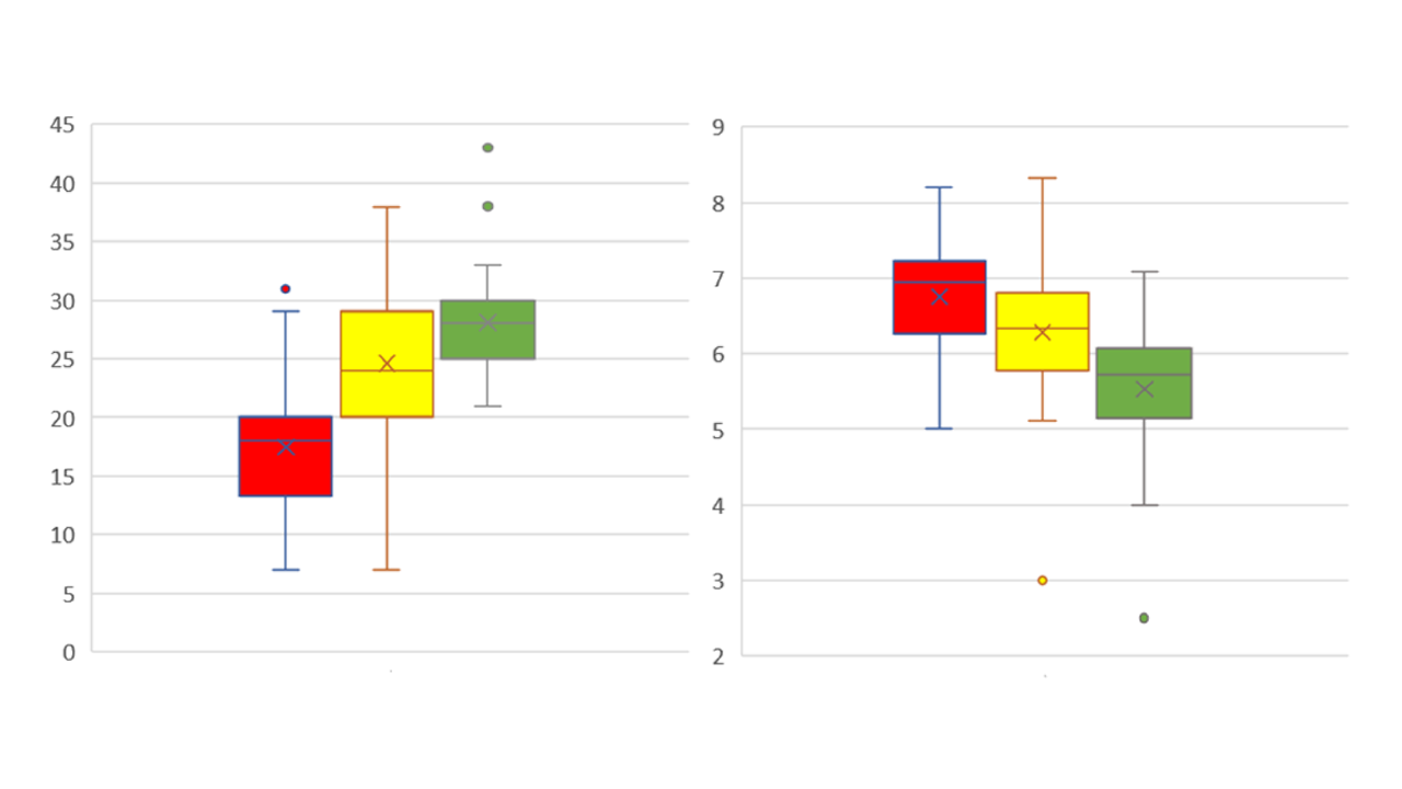 Het is duidelijk te zien dat naarmate de kwaliteit van de oevervegetatie toeneemt, het gemiddeld aangetroffen soorten ook toeneemt. Opvallend is dat er weinig verschil lijkt te zijn in het aantal rode/slechte indicatorsoorten wanneer de kwaliteit toeneemt. Zo komen de rode indicatorsoorten gemiddeld ongeveer even vaak voor op de rode locaties als de groene locaties. De rode plantensoorten worden dus niet ‘vervangen’ door de groene soorten, maar als het ware aangevuld met gele en groene soorten.
