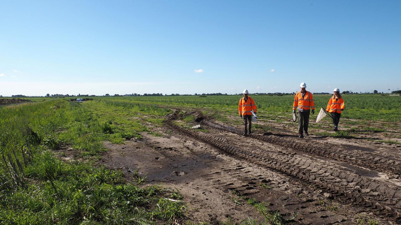 De eerste nulmeting in juni heeft laten zien dat er op de open grasvelden en braakliggende akkers weinig tot geen bestuivers te vinden zijn, maar dat de grote diversiteit aan bloeiende plantensoorten langs de sloten en dijken rondom het terrein zeer aantrekkelijk is voor bestuivers. Door middel van potvallen en vangnetten heeft een team van Naturalis in twee dagen tijd verschillende soorten bestuivers aangetroffen in deze delen van het terrein, zoals aardhommels, akkerhommels, weidehommels, honingbijen, zandbijen, diverse zweefvliegsoorten en vlinders.
